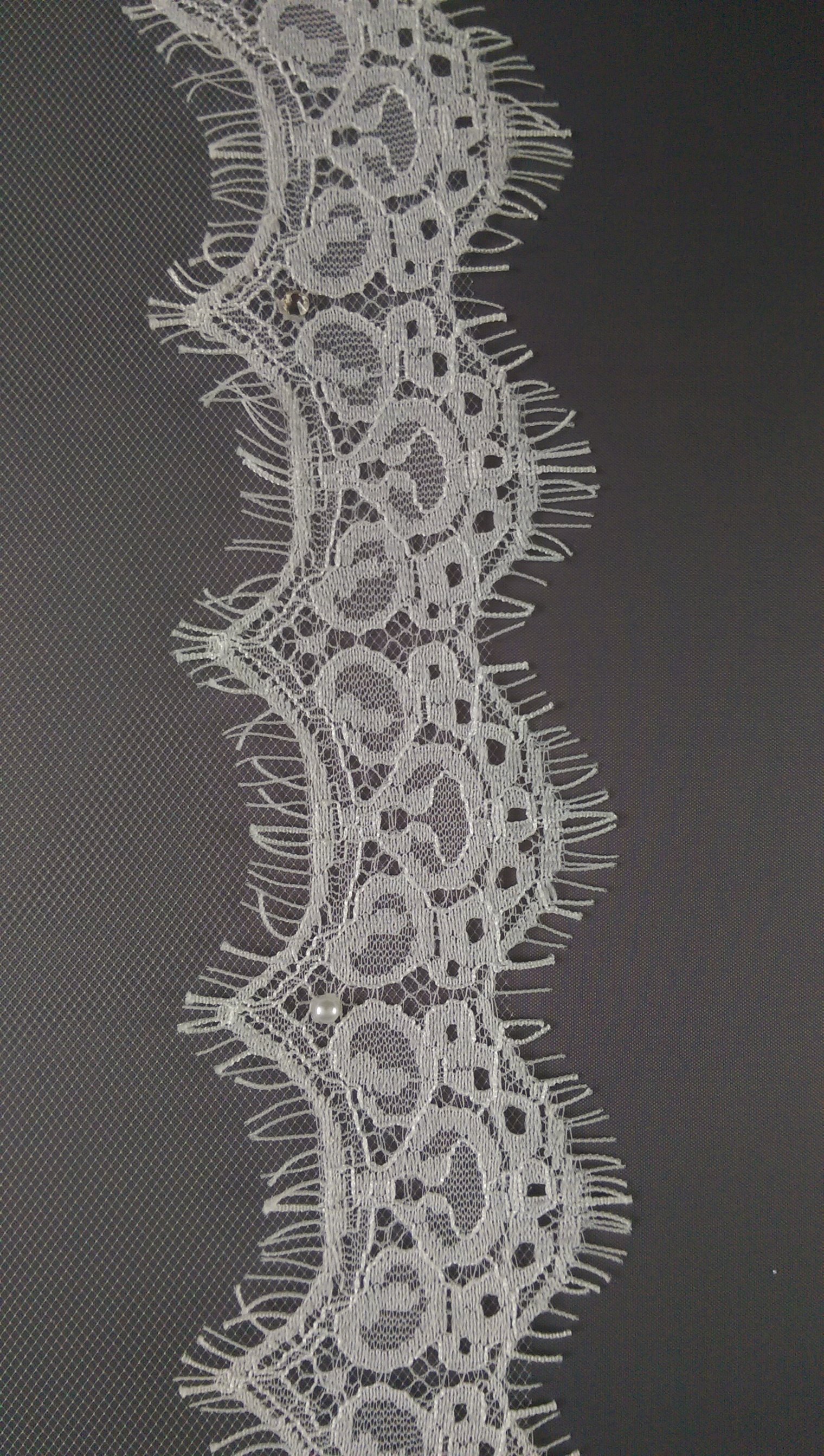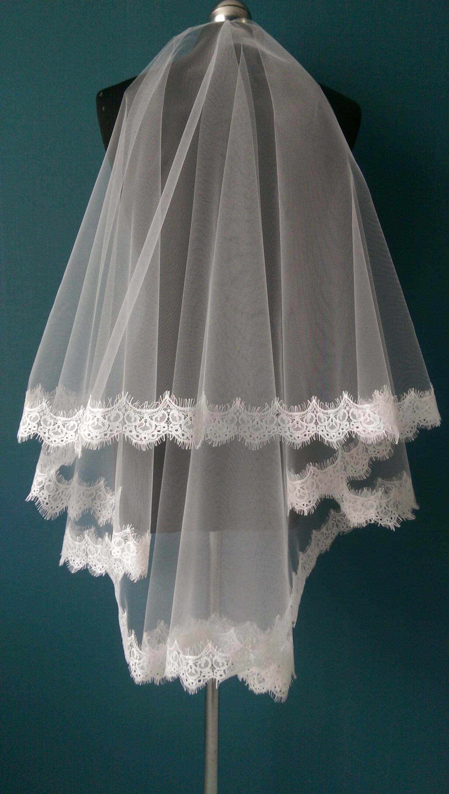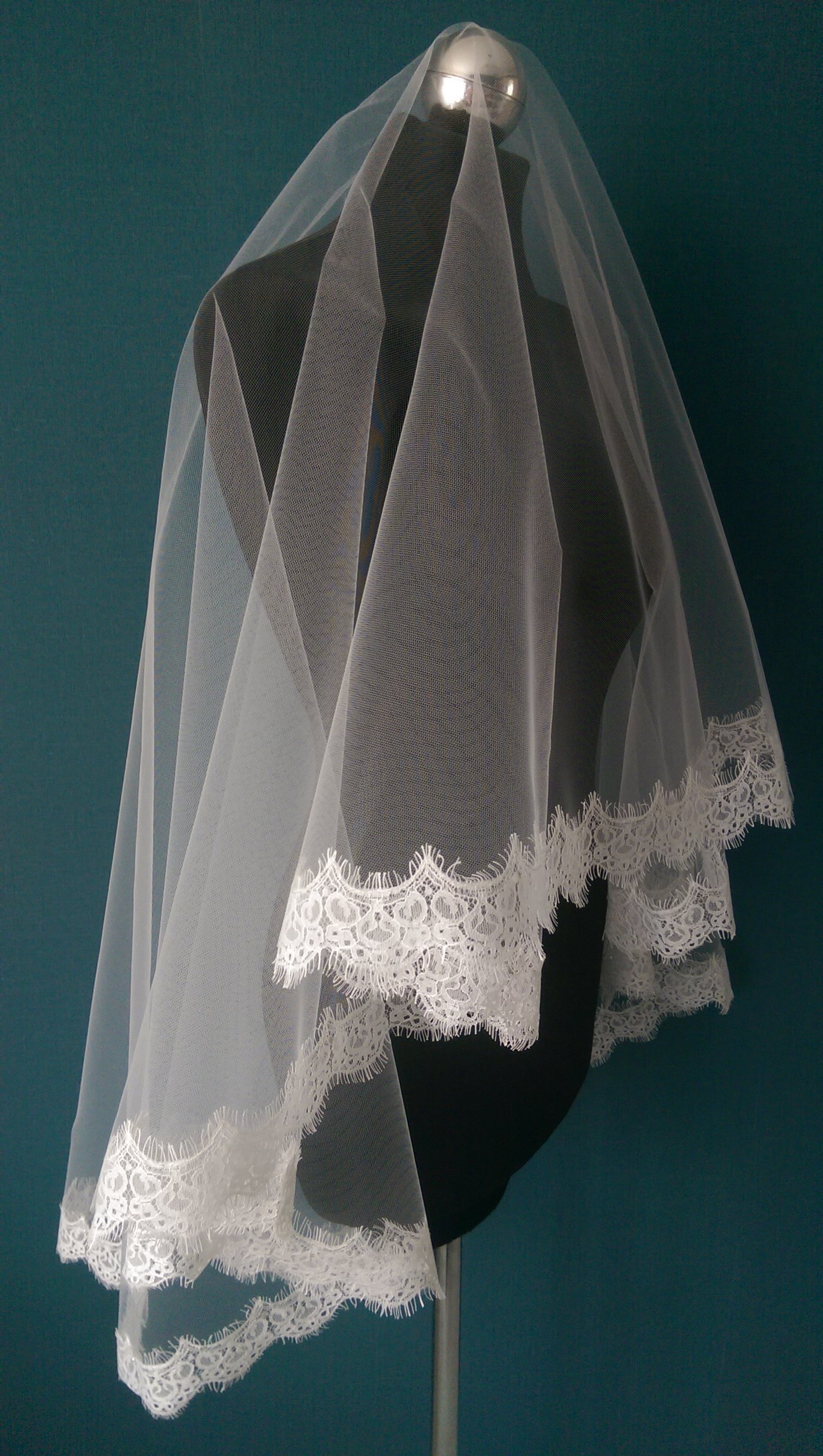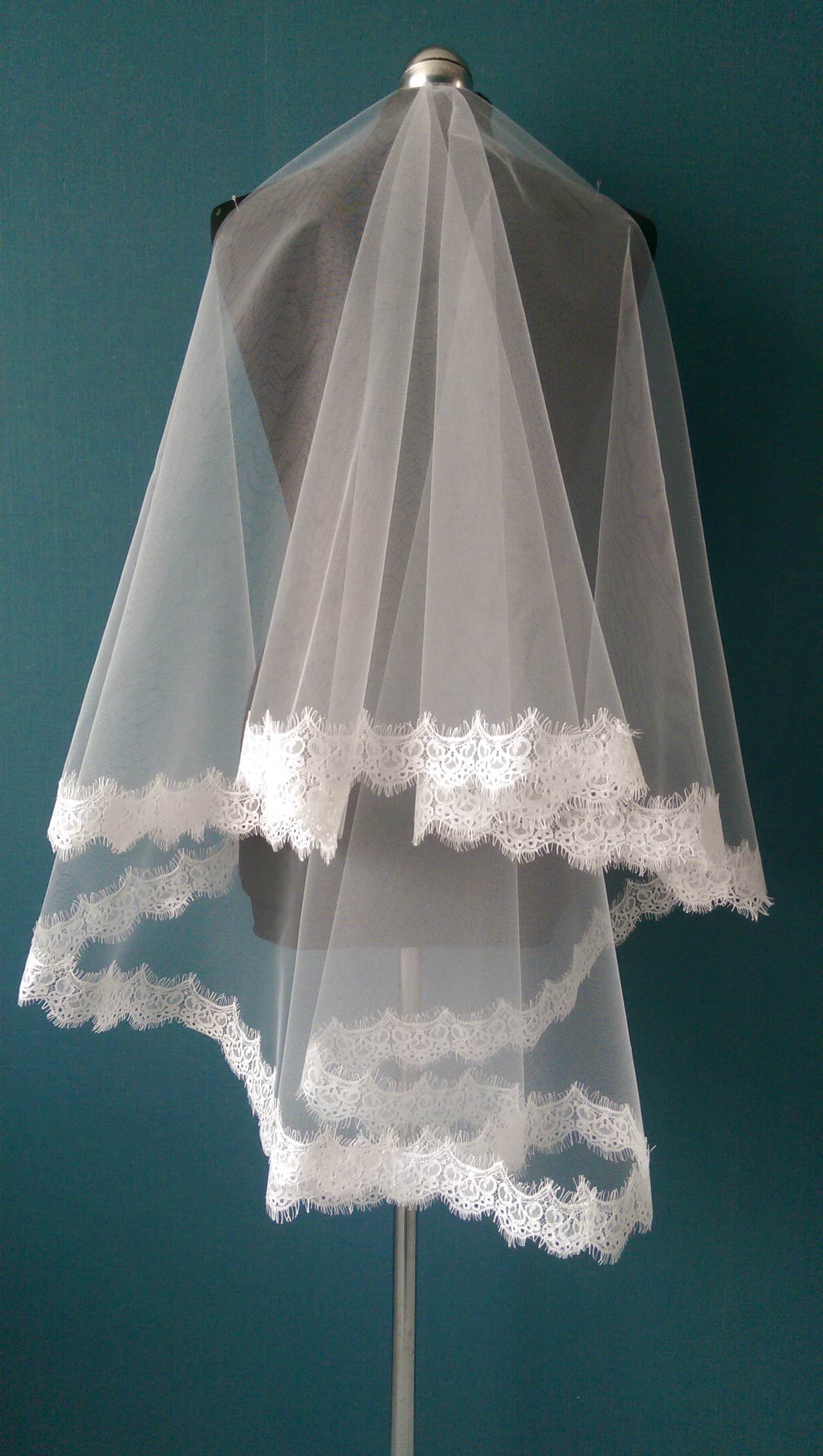 | Особенности | Фата 2-х ярусная, размер 1,5х1,5 метра ( длина верхнего слоя - 60 см, нижнего - 90 см ). Оформлена кружевом "шантильи" и украшена стразами,жемчугом. |
