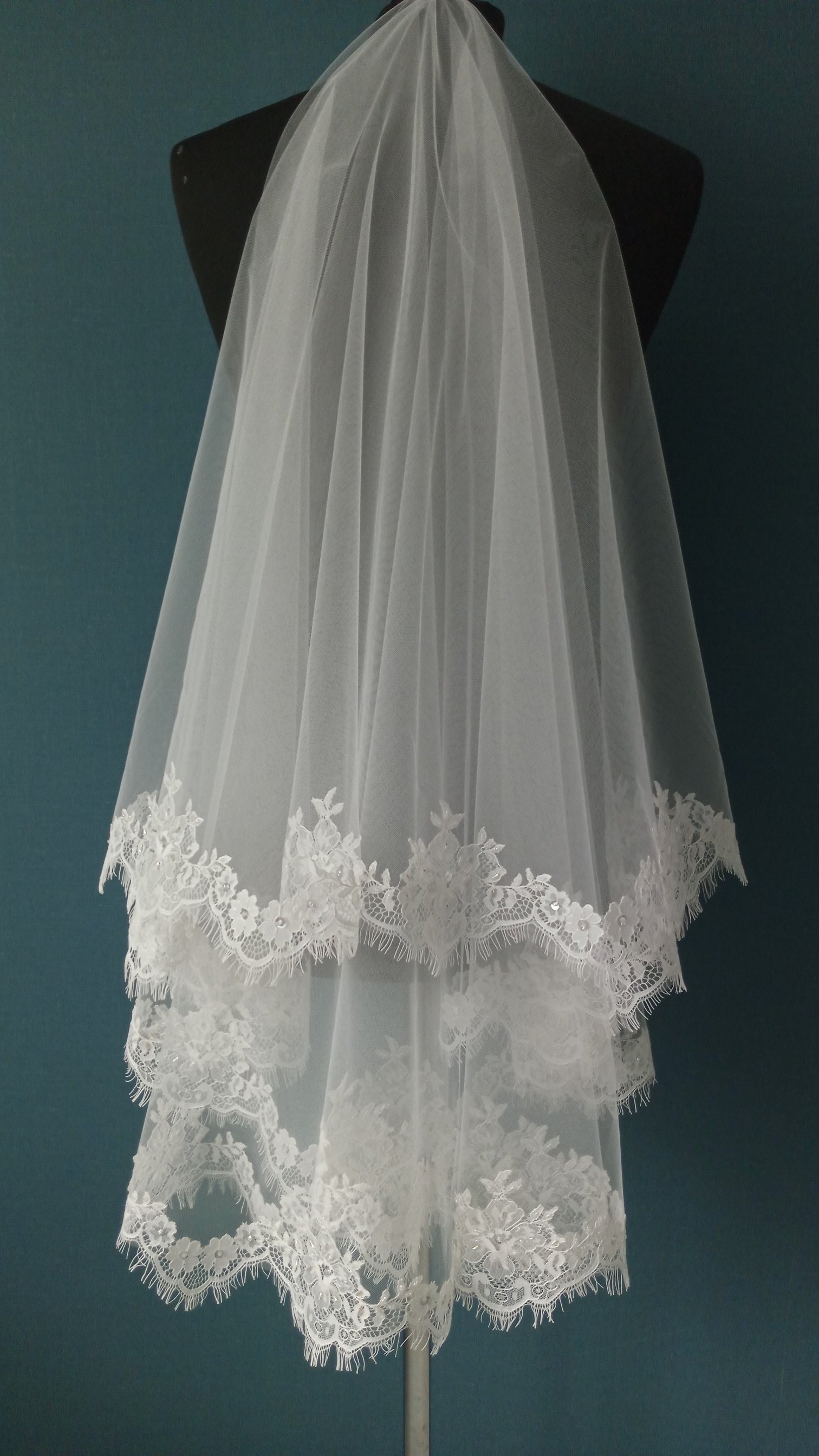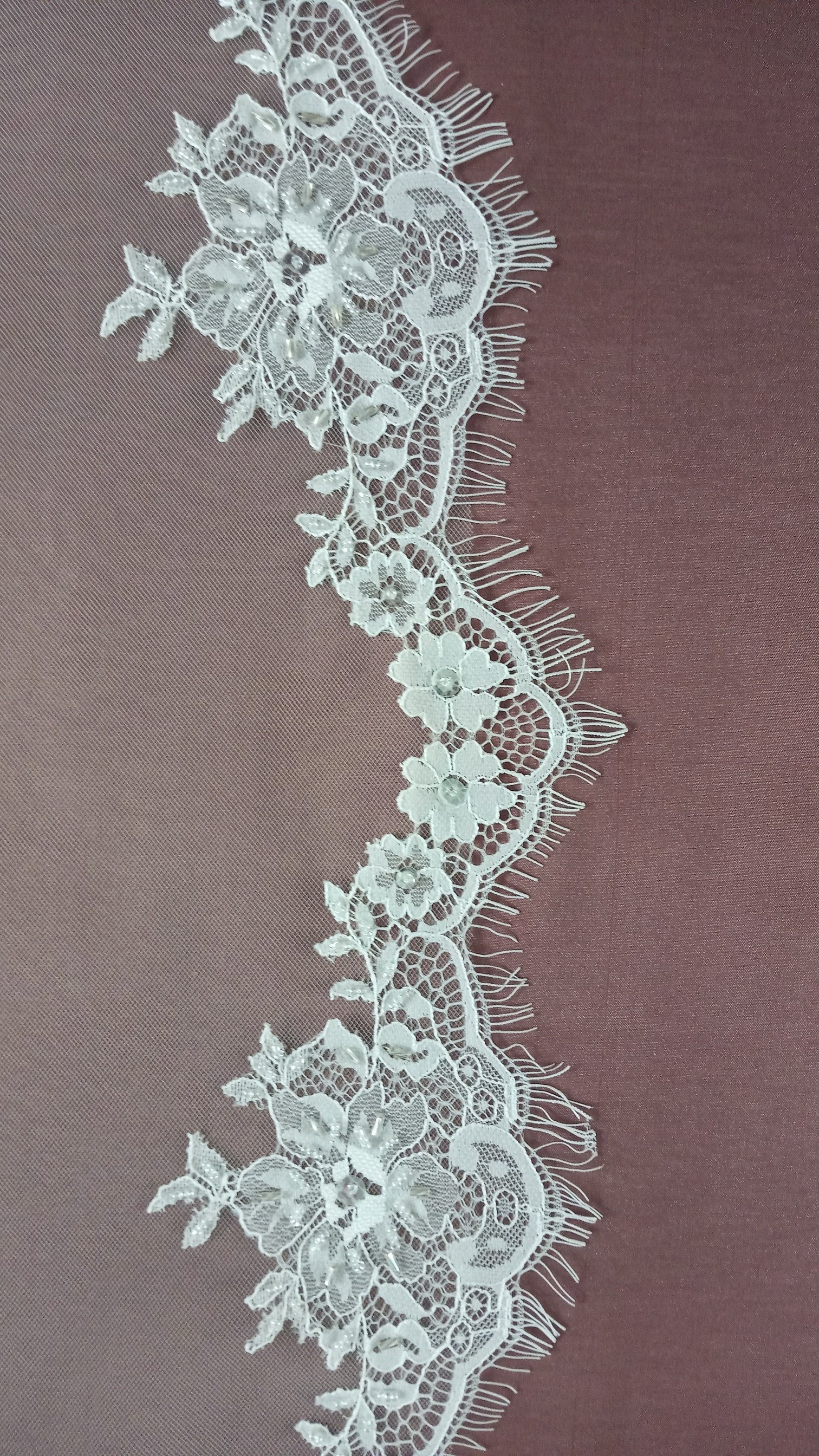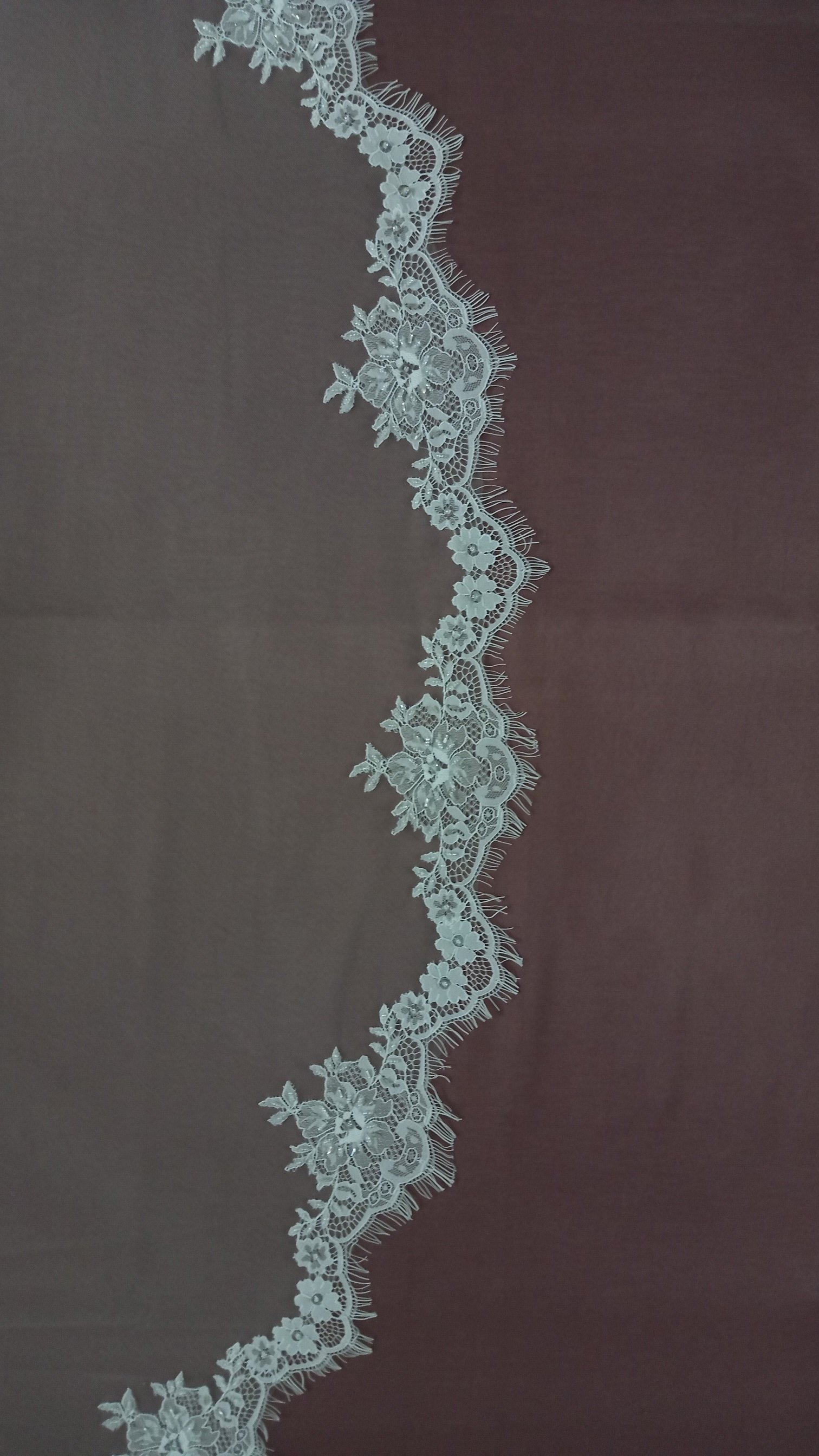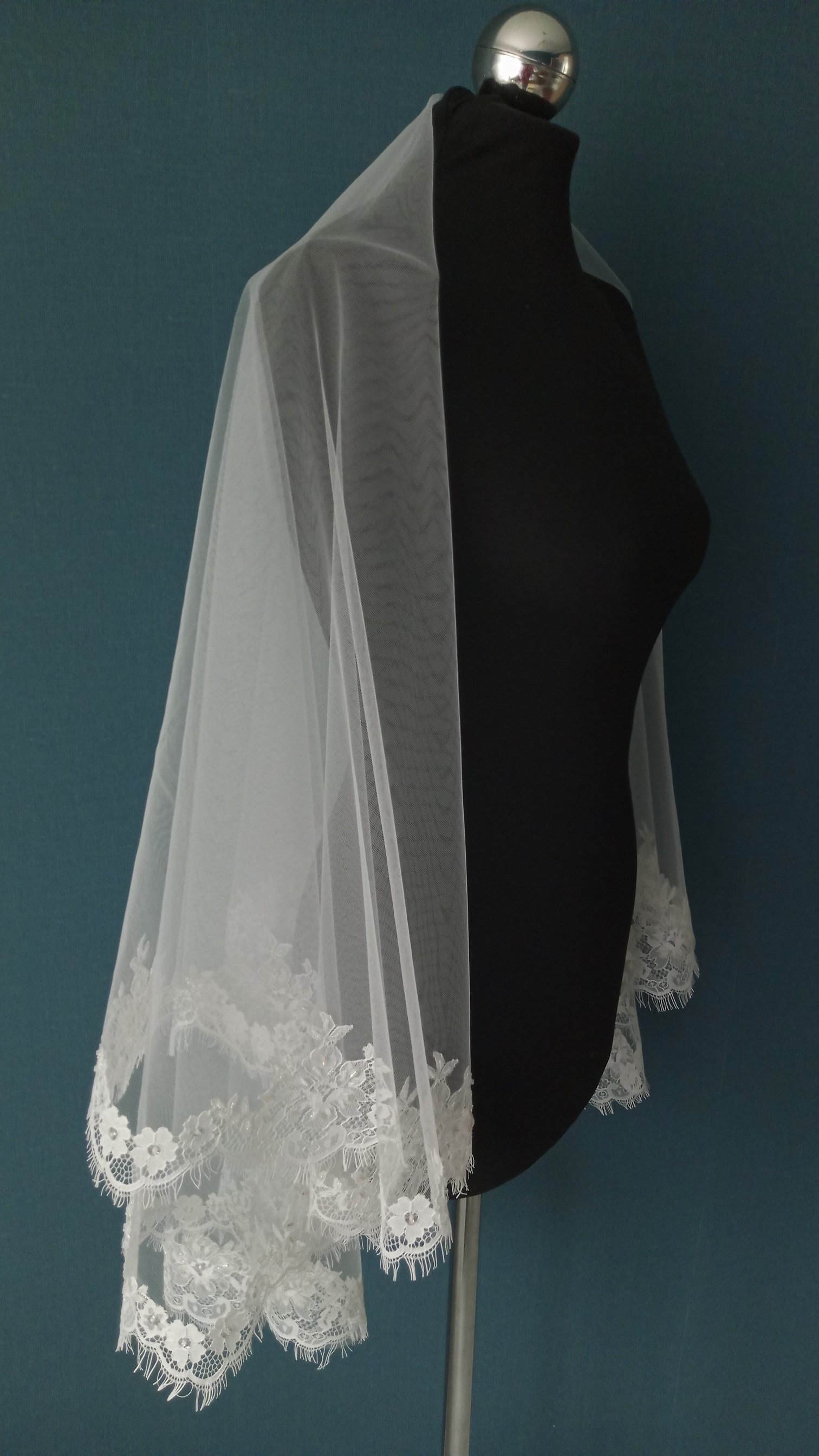 Особенности Фата 2-х ярусная, размер 1,5х1,5 метра ( длина верхнего слоя - 60 см, нижнего - 90 см ). Оформлена кружевом "шантильи" ,вручную расшита бисером,бусинами,паетками.